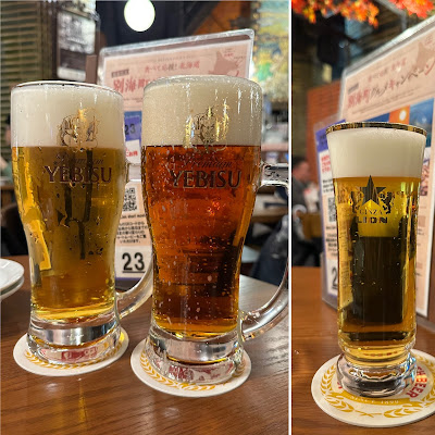 | 爬山有點辛苦,一定要先喝啤酒(一杯 Yebisu 生啤、一瓶黑星 Sapporo) |
